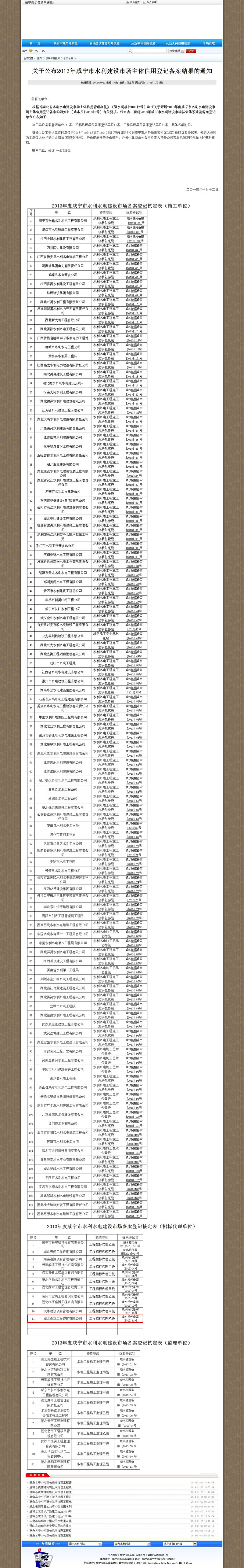我公司成功入选2013年咸宁市水利建设市场主体信用登记备案单位
