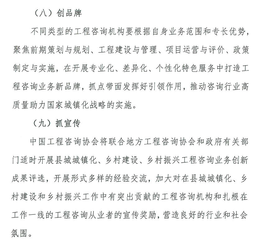 县城城镇化建设、乡村建设是一项宏大的社会工程,需要整体的、长远的规划。特别是城乡“二元”化结构较为明显,大部分乡镇和村庄发展规划欠缺,村落布局散乱,公共服务供给不足,严重制约了县城、乡村发展。规划咨询,注重规划先行,因地制宜,可运用工程技术、科学技术、经济管理和法律法规等多学科的知识与经验,为县城建设项目决策提供智力服务,解决县城发展与定位问题,避免错乱发展,无效竞争。