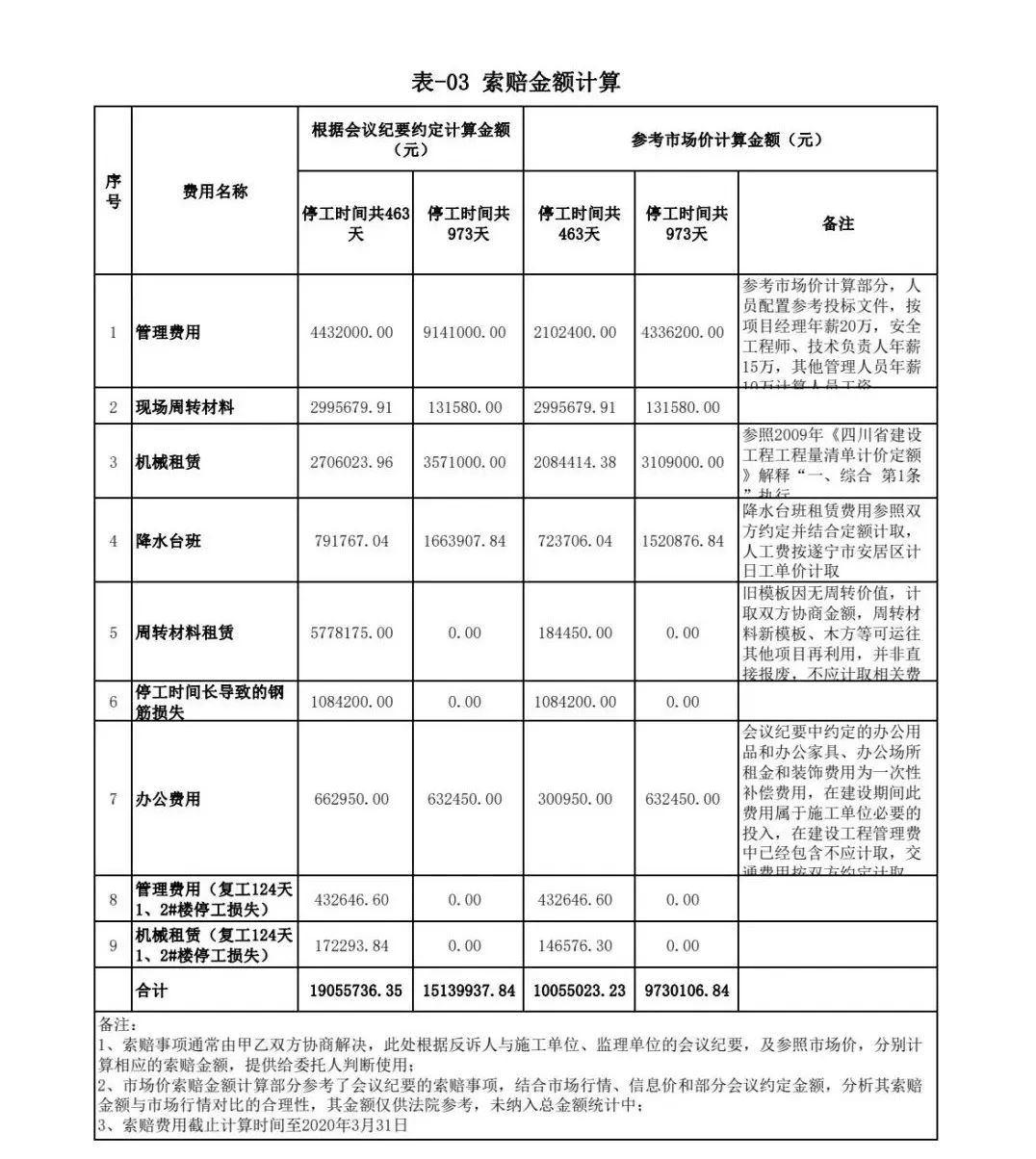 开发公司主张停工索赔费用,委托人移交的证据中,包括了由开发公司、监理公司及施工单位三方出席,明确了停工索赔费用标准的会议纪要,但此会议纪要价格明显高于市场价。此问题从表面上来看是造价领域的专业问题,但其实也涉及到了证据效力的明确等法律问题。为避免“以鉴代审”,经讨论,鉴定人分别按会议纪要、参考市场价及定额计算索赔金额,提供给委托人选择使用。