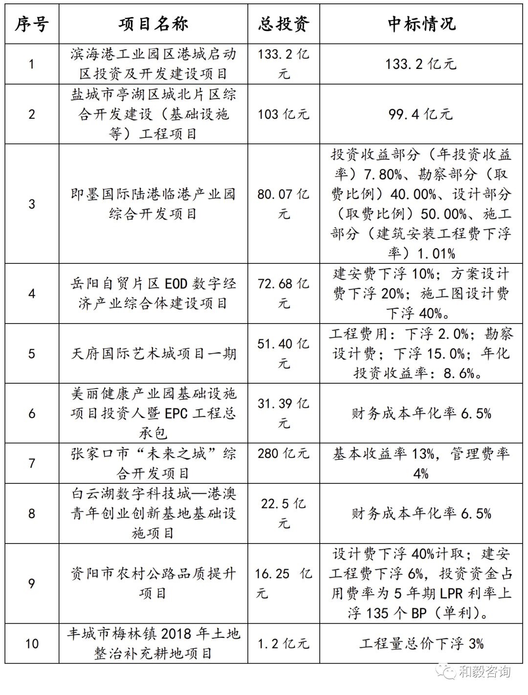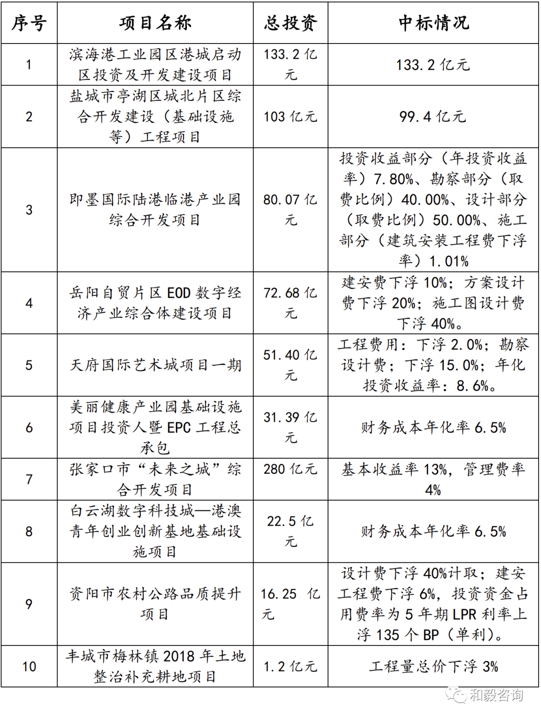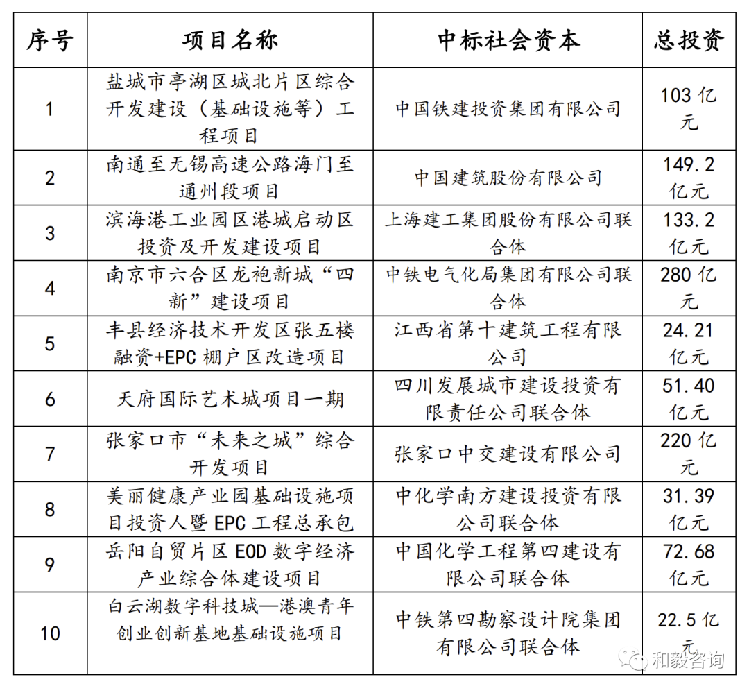 表3 国内“投资人+EPC”典型项目中标情况表
