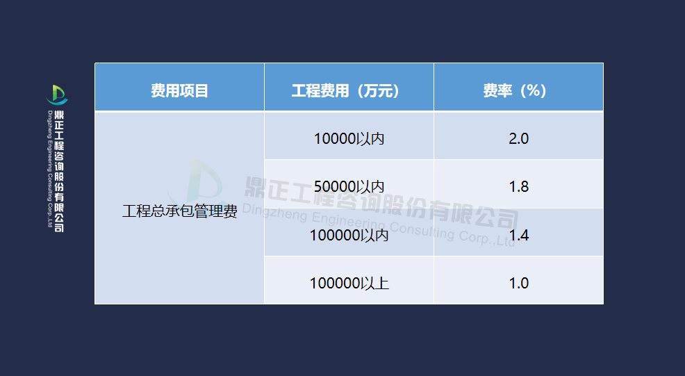 (二)工程总承包其他费:包括建设项目总投资中工程建设其他费中的部分费用:1.勘察费:详细勘察费、施工勘察费;2.设计费:初步设计费、施工图设计费、专项设计费;3.工程总承包管理费;4.研究试验费;5.土地及占道使用补偿费;6.场地准备及临时设施费;7.咨询费;8.检验检测及试运转费;9.系统集成费;10.财务费;11.工程保险费;12.其他专项费。