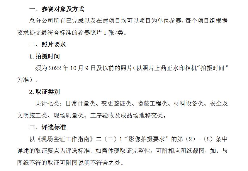 2022年10月9日,我们在全公司范围内组织了“项目现场鉴证取证技能大赛”活动,自活动通知发布以来,共收到来自总分公司的119张参赛鉴证照片。