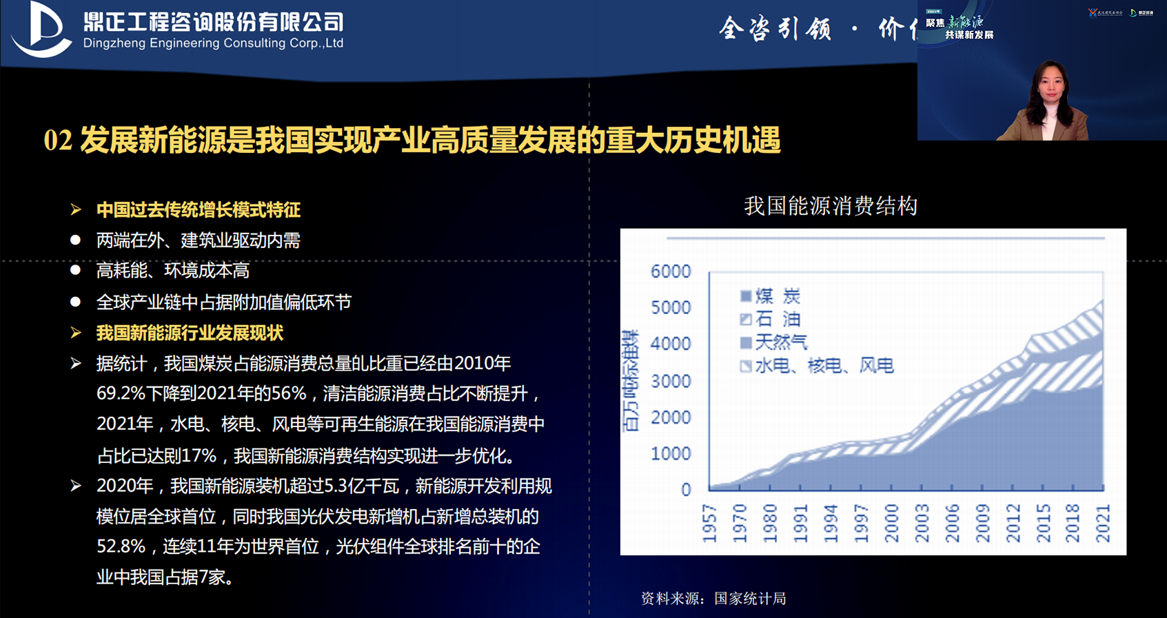 鼎正工程咨询产业咨询师常梦醒以“新能源产业政策研究”为主题,介绍了我国新能源产业的发展现状,重点解读了新能源行业的相关政策和未来发展趋势,并从工程咨询角度出发,介绍了鼎正近年来在绿色能源项目积累的先行经验,给出了未来发展新能源产业的相关工作建议,为工程咨询企业进入新能源市场提供思路与参考。