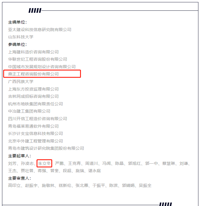 此次参与《建设项目过程结算管理标准》的编制既是鼎正多年坚持推行施工过程结算的又一成果,更是鼎正履行推动行业进步、规范建设市场行为的专业职责所在。未来,鼎正将再接再厉,不断成长,通过标准编制在行业内传递鼎正经验,为行业发展贡献力量。