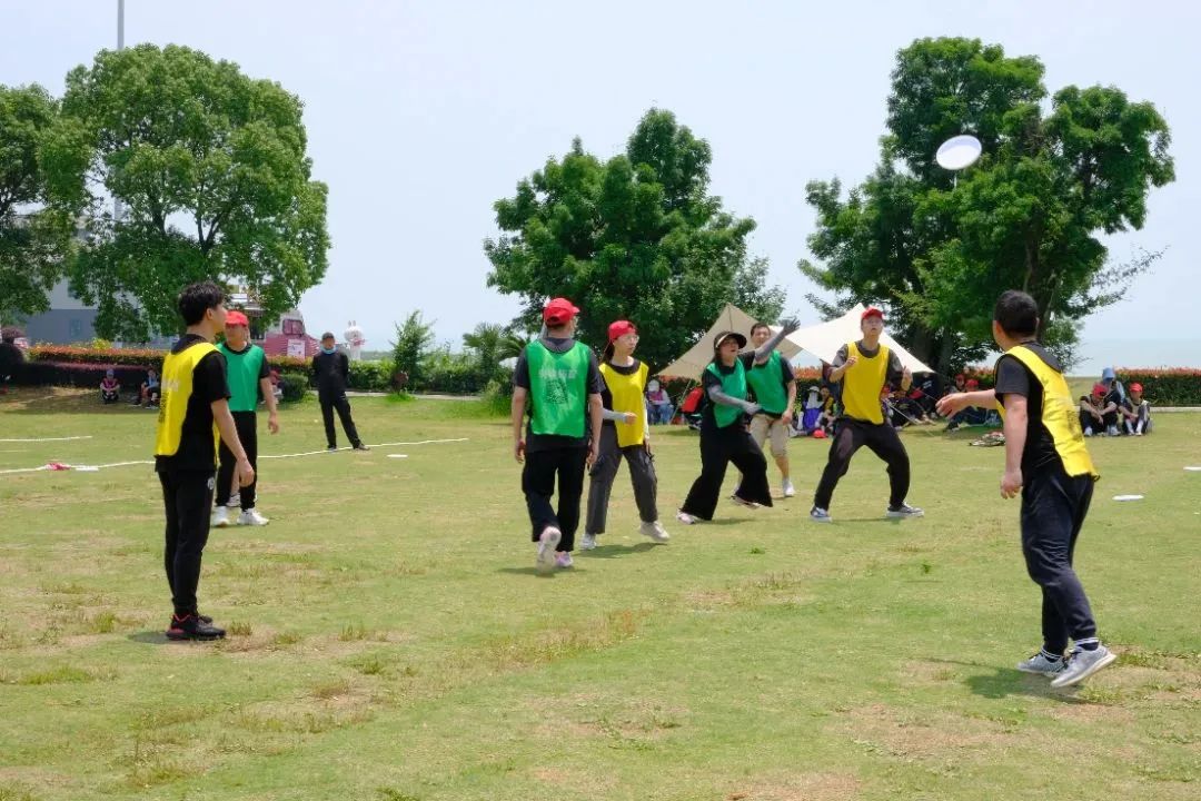 在教练的带领下,大家来到户外场地开始实地开展飞盘竞赛。飞盘练习场上,有迅速上手并渐入佳境的小伙伴,有互相鼓励对方说“没关系,再试一次” 的组队搭档,也有时不时传来欢声笑语的同事