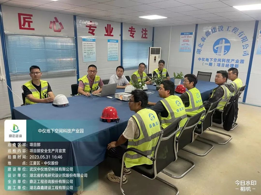 5月31日,鼎正项目管理事业部在中仪地下空间科技产业园项目组织“安全生产月”主题学习,项目管理事业部副经理张力主持会议,他指出,安全责任重于泰山,全体人员要深入贯彻习近平总书记关于安全生产的讲话精神,持续深入学习安全生产“十五条措施”,从严从紧落实“第一责任人”责任,坚决防范生产安全事故发生。