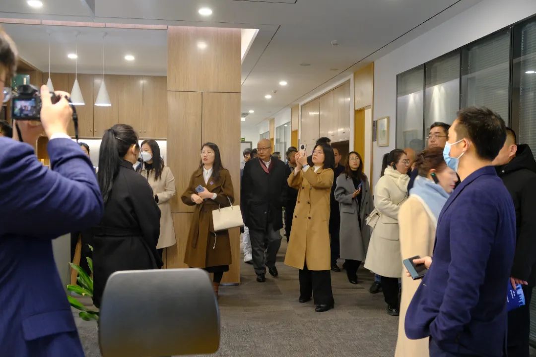 王董陪同尹教授一行参观了鼎正第一办公空间、第二办公空间,并详细介绍了鼎正的企业文化、发展战略、业务模块,与会代表对鼎正“颜值”连连称赞道“这里办公氛围太舒服了”!