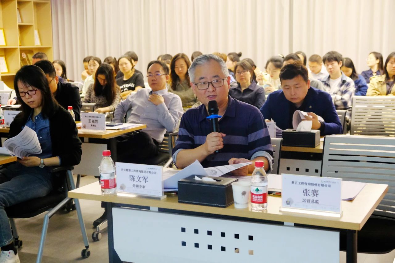 本次竞聘现场评委由董事长王雁然、总经理毛迎霞、技术总监朱立冬、副总经理彭亮、副总经理张虎、开元数智工程咨询集团有限公司陈文军、生产中心各级骨干及造价事业部全体同事组成。