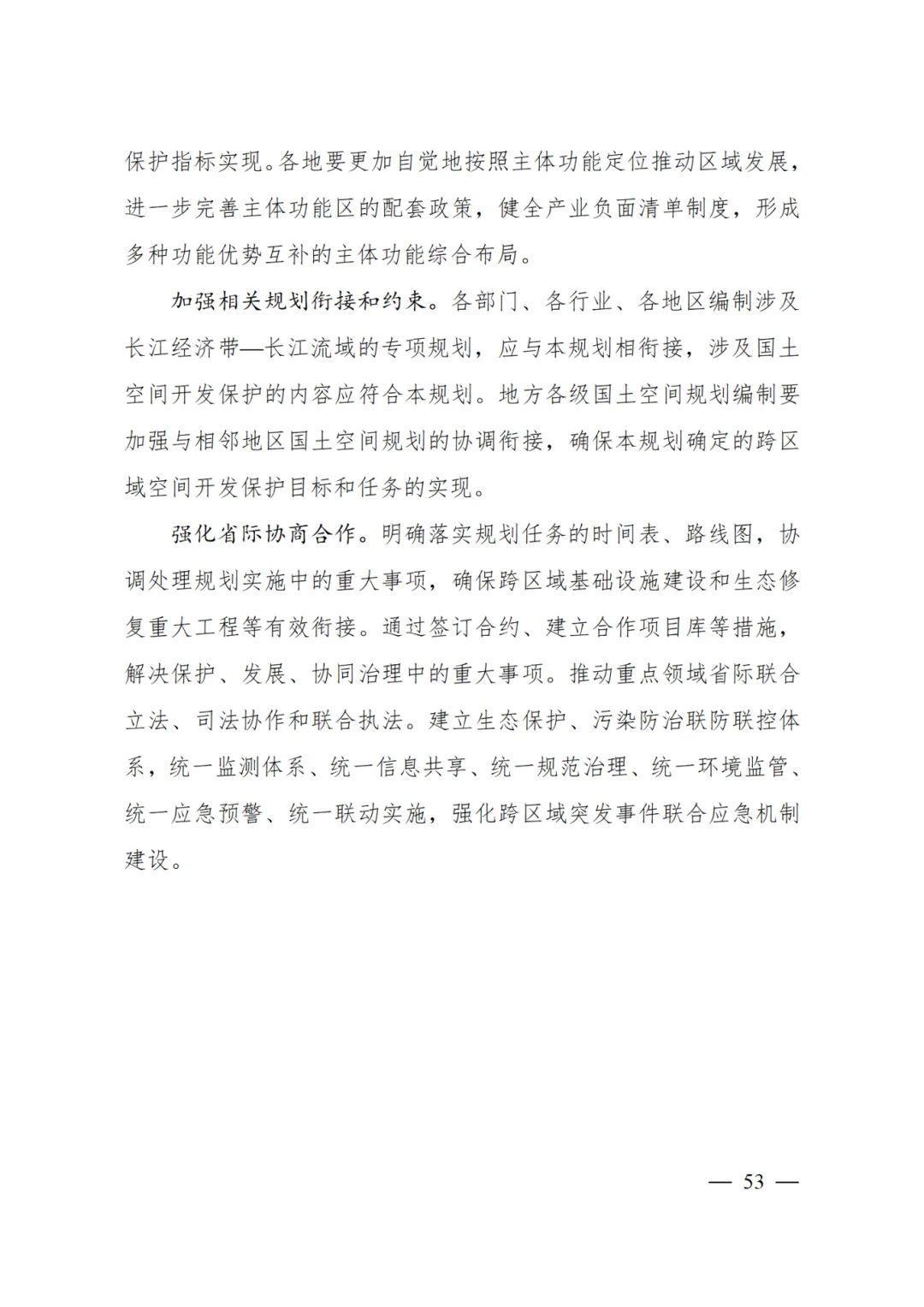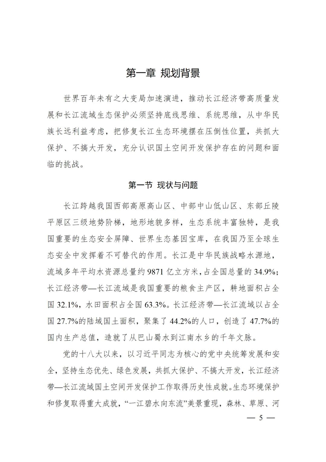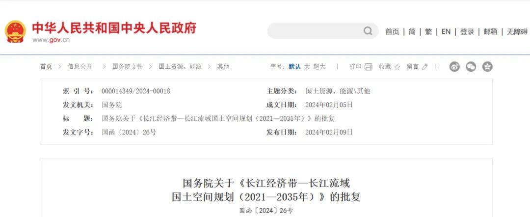 2024年2月9日,《长江经济带—长江流域国土空间规划(2021—2035年)》经国务院批复同意。9月10日,自然资源部正式印发《长江经济带—长江流域国土空间规划(2021—2035年)》。规划范围包括长江经济带11个省(市)全域,以及《长江保护法》规定的长江流域其他8省(区、市)的相关县级行政区域,共计1173个县级行政区域。规划范围包括陆域国土和内水、领海。其中,陆域面积240万平方公里。(后附规划范围详细表格)规划期限为2021年至2035年。