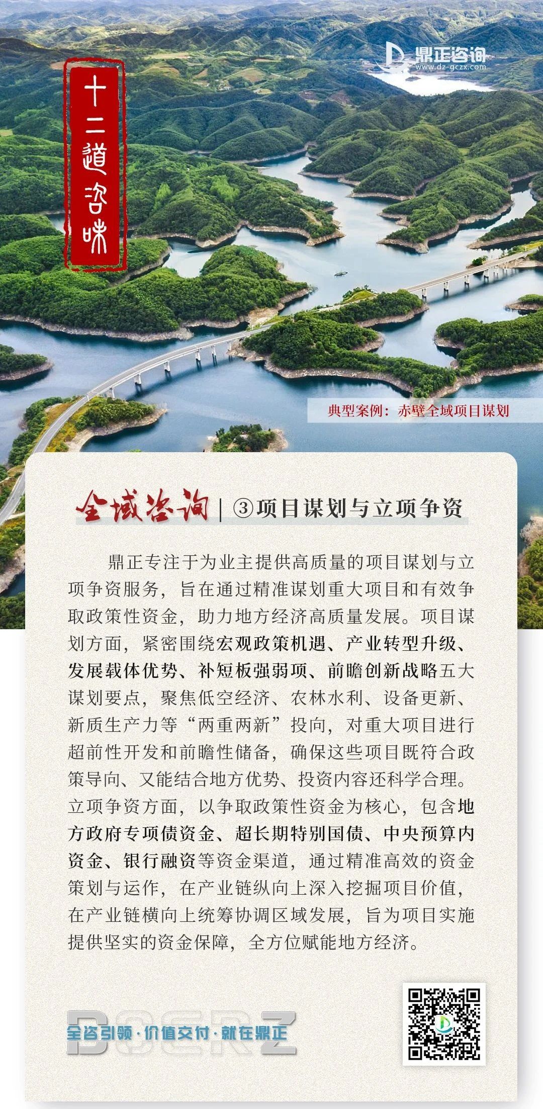 鼎正专注于为地方政府提供全方位咨询服务,凭借深厚的专业知识和丰富的实践经验,我们已成功助力多个地方政府申报专项债、超长期特别国债、中央预算内资金等项目,累计申报288个项目,投资额超260亿元,成功争取资金超90亿元。