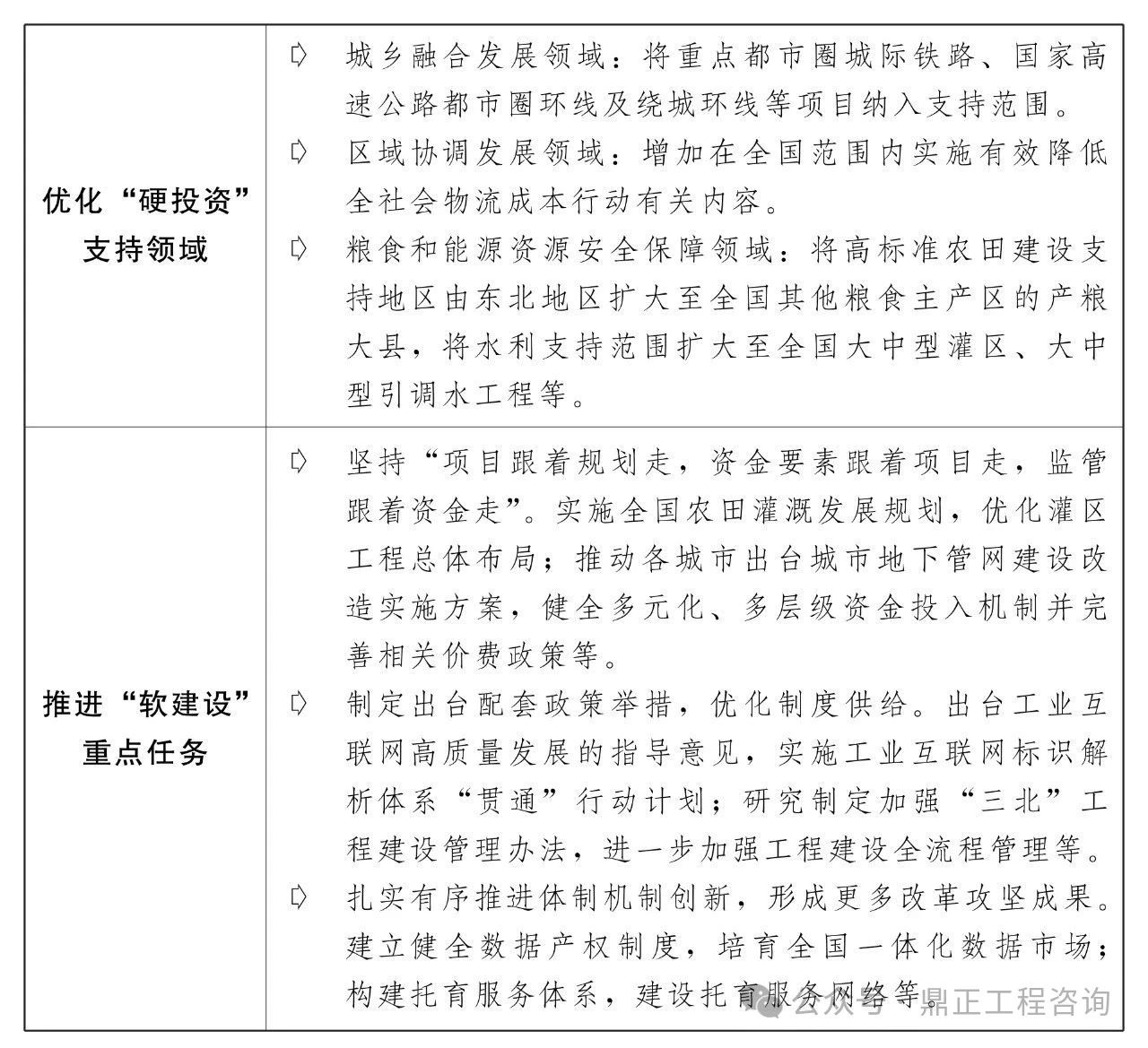 安排超长期特别国债8000亿元支持 “两重”建设,进一步优化具体投向并提高项目支持比例,重点支持基础研究能力提升、未来产业发展、东北等重点地区高标准农田建设、大中型灌区新建改造及大中型引调水和大中型水库建设、长江经济带生态环境保护和绿色发展、农业转移人口市民化公共服务体系建设、高等教育提质升级、城市地下管网管廊建设改造等方面任务,强化超长期贷款等配套融资,高质量推进 “硬投资”项目谋划实施。加大力度推动 “软建设”政策落地见效。
