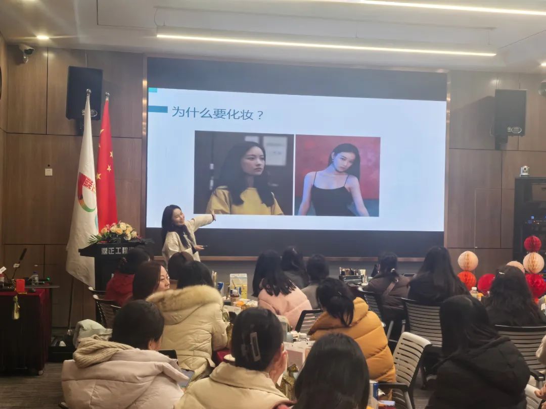 3月6日下午,鼎正为每一位女神精心准备了一场专属仪式——“从容出发,妆点自己”主题美妆课堂。在专业美妆老师的指导下,她们暂时放下手中的工作,拿起彩妆画笔,开始勾勒属于自己的高光时刻。她们在工程图纸与化妆刷之间切换,寻找更好的自己,用美丽绽放诠释事业与美的双重进阶。