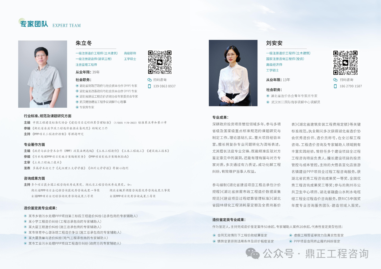 故,组建了一支精通工程造价、熟悉法律法规,且融合工程设计、招标投标、合同管理、施工组织设计的复合型专业团队,其中专家团队如下:
