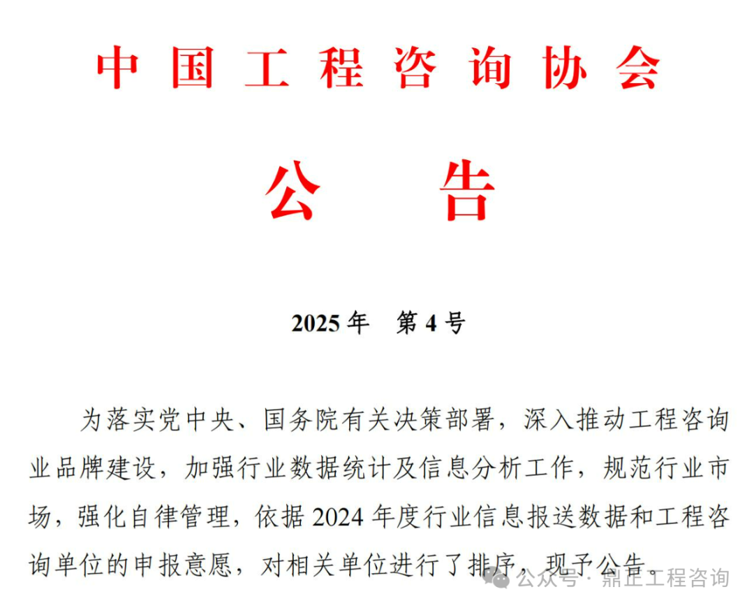 为进一步推动工程咨询行业品牌建设,规范行业行为、提高自律管理,8月21日,中国工程咨询协会在官网发布了关于2024年度工程咨询单位排序的公告。鼎正凭借稳健的经营实力和综合表现,同时荣登两项百强榜单,位列“2024工程咨询单位营业收入中型企业100强”第57位,以及“2024工程咨询单位民营企业营业收入100强”第71位!