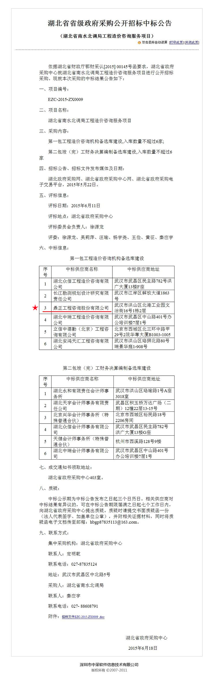【经营成果】我司入围2015-2017 年度洪山区财政投资评审项目中介机构库