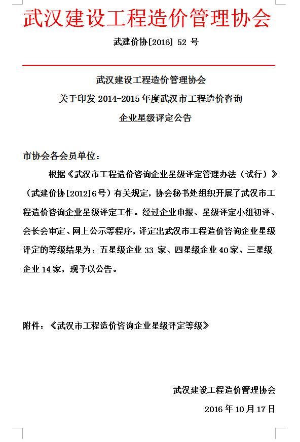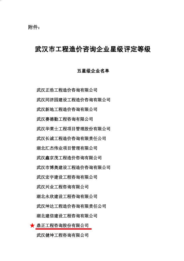 我司获武汉市工程造价咨询企业星级评定五星级企业称号