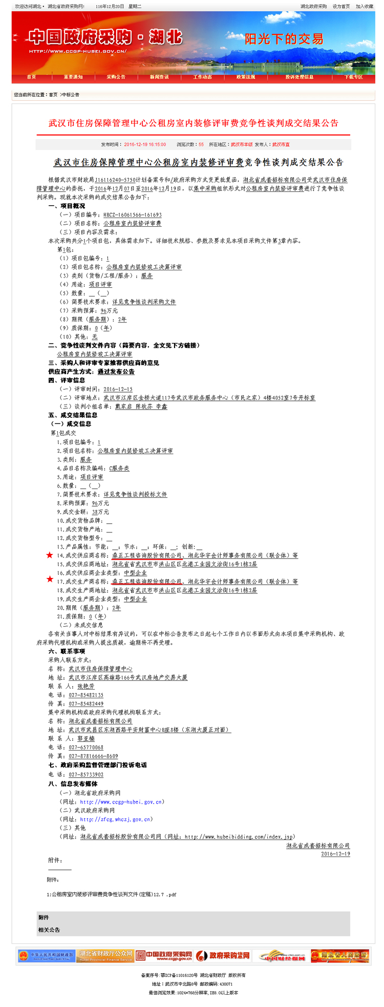 【经营成果】我司中标武汉市住房保障管理中心公租房室内装修评审费竞争性谈判项目