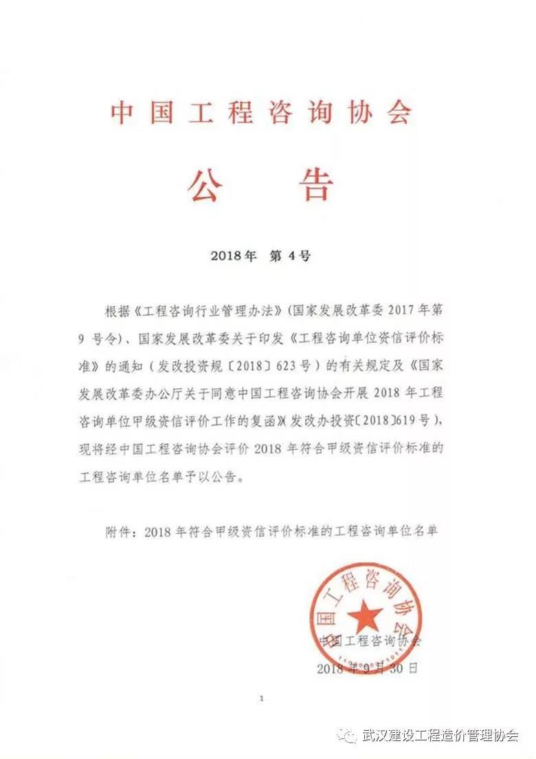 2018年9月30日,中国工程咨询协会发布了”2018年符合甲级资信评价标准的工程咨询单位名单”,鼎正工程咨询获评工程咨询建筑、市政公用工程专业两项甲级资信,一项PPP咨询专项甲级资信。