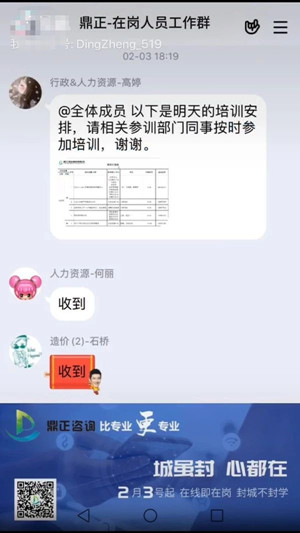 2月4日起,总公司每天安排不同的课程进行网络在线教学,让员工们在这个疫情防控的特殊时期静下心来学习,弥补自己的短板,提升自己的能力。除了白天的培训学习,每天晚上八点,公司领导还组织员工观看学习建设行业大咖们共同创建的《建设行业抗疫连线》直播,和大家一起在线上交流讨论彼此的学习心得。