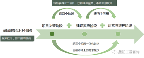 1)完全全过程是提供跨投资决策期、建设期与运维期三大阶段的一体化咨询,目前市场上的需求较少。