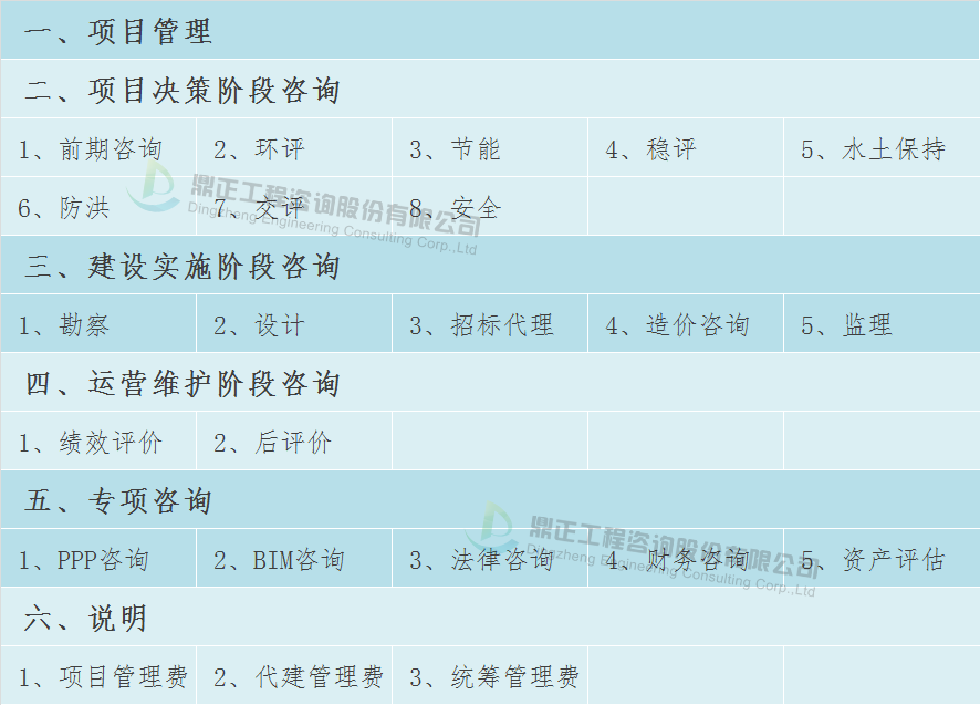 招标代理服务取费可参考《国家计委关于印发<招标代理服务收费管理暂行办法>的通知》(计价格〔2002〕1980号),采用差额定率累进计费方式。造价咨询服务取费可参考地方收费标准,如湖北省地方标准——《省物价局省住建厅关于印发工程造价咨询服务收费标准的通知》(鄂价工服规〔2012〕149号),以收费标准为基准价,具体收费额按差额定率分档累进方法计算。